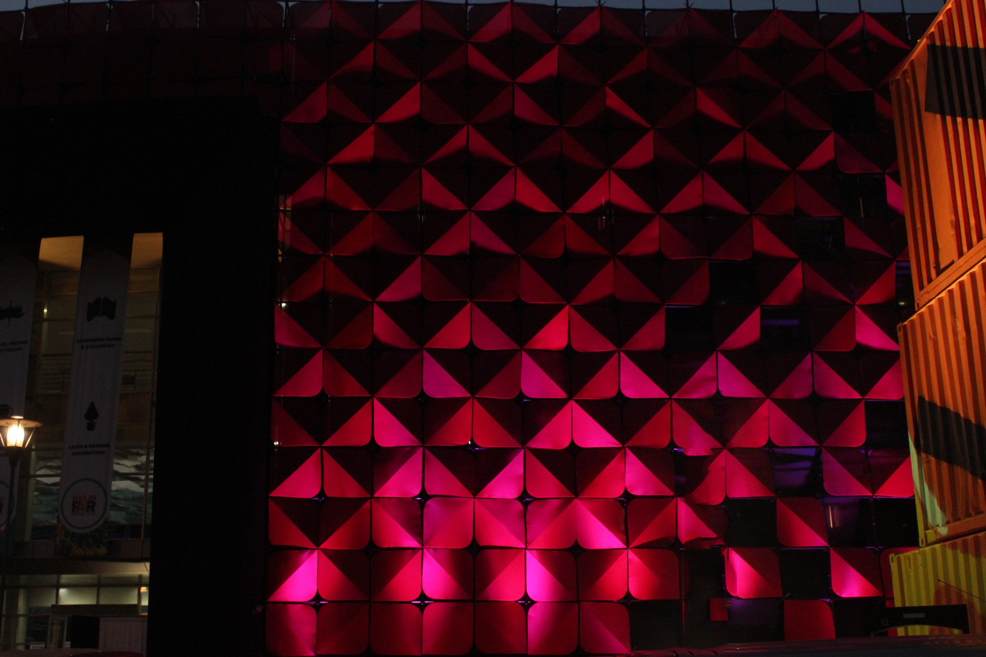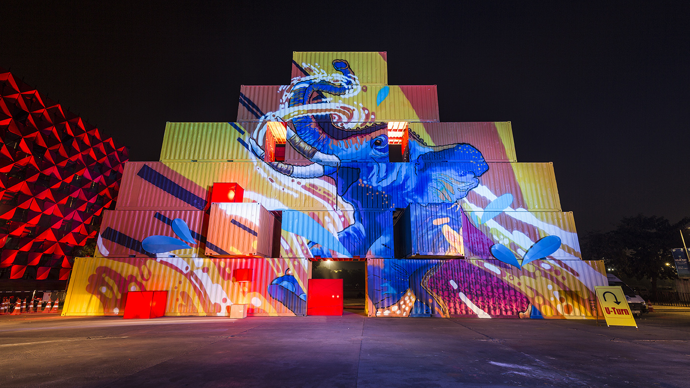 Being a temporary structure, with very high movement in and around the structure, few challenges were eminent like lighting infrastructure to be integrated with the façade as much as possible. Since the event was for 5 days and these fixtures are rented by the day, the budget was an important constraint. The design became a prominent selfie point for the attendees of the fair. Making it one of the most desirable locations on the entire campus.
